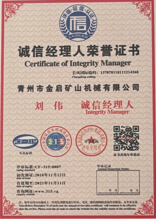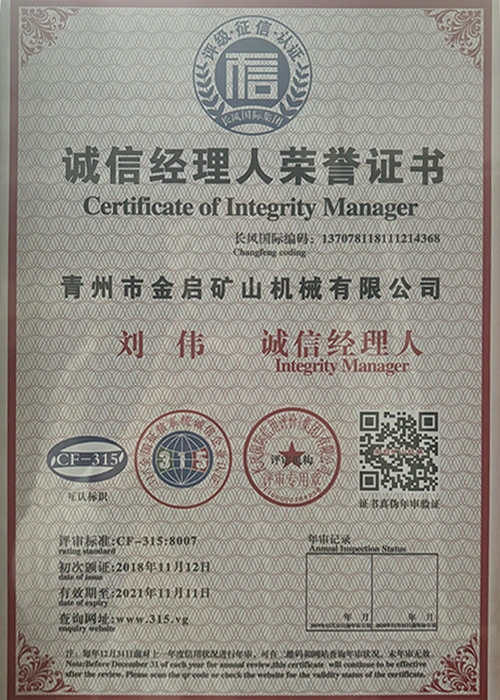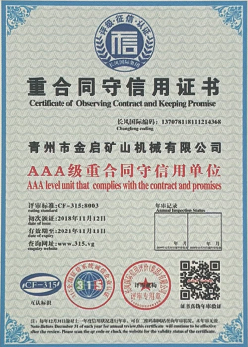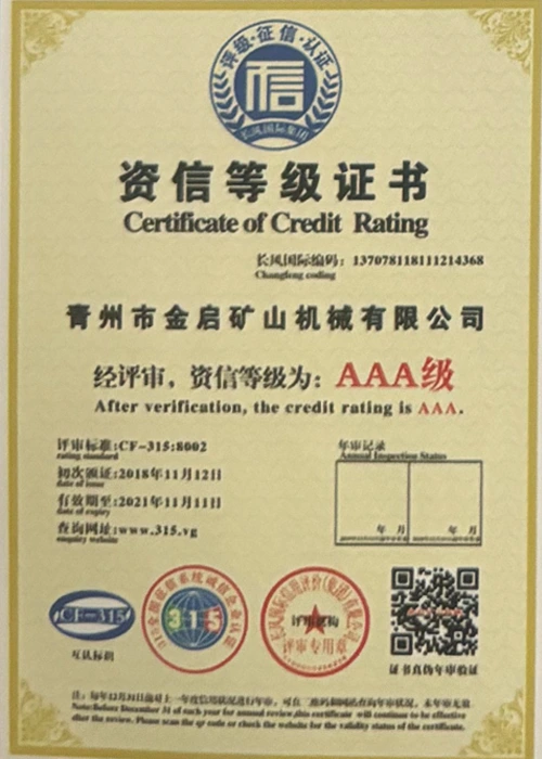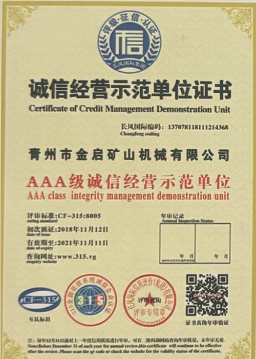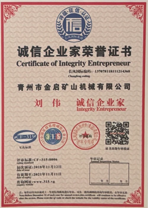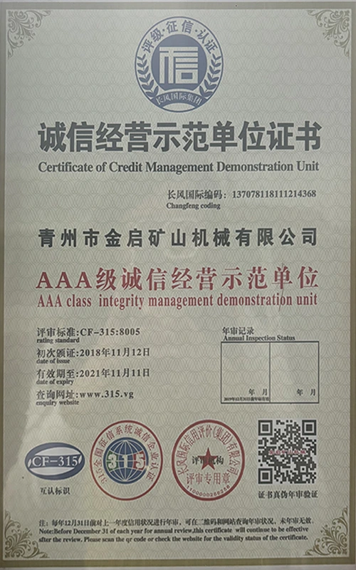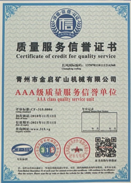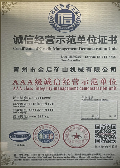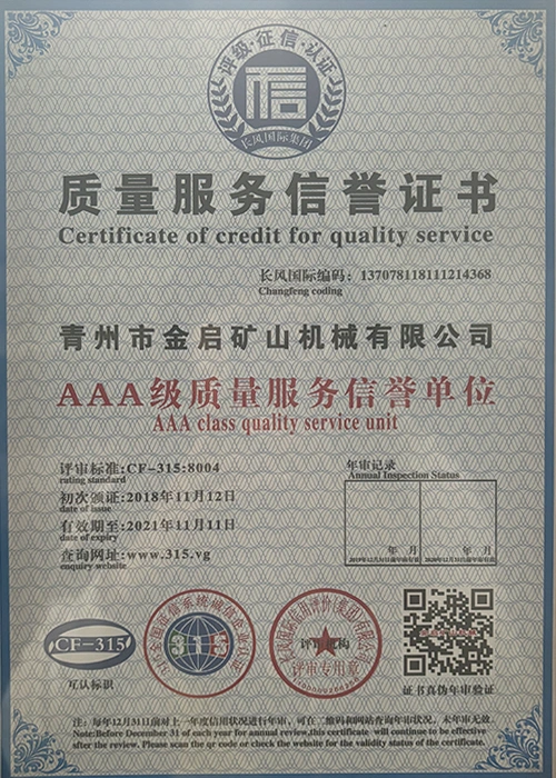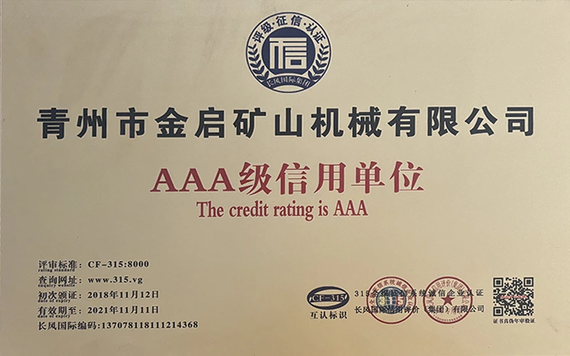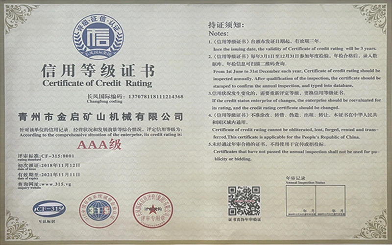 Me nā makahiki o ka ʻike hohonu i ka ʻoihana, e hilinaʻi ana i ka mana koʻikoʻi a me ka hoʻomau ʻana i ka ʻenehana hoʻomau, ua loaʻa i ka hui nā helu mana mana, nā palapala hōʻoia a me nā palapala patent, me ka ISO ISO quality management system certification, mining product safety certification, as well as multiple invention patents and utility model patents for equipment structure optimization and profound technical production optimization.